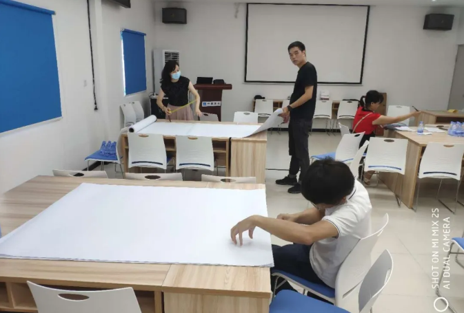 07月03日,人事行政部門(mén)的小伙伴兒們?cè)缭绲膩?lái)到萬(wàn)科總部大廈項(xiàng)目部布置會(huì)場(chǎng),挪桌椅、備物資、調(diào)設(shè)備,為了能順利地開(kāi)啟課程,前期的會(huì)場(chǎng)準(zhǔn)備一項(xiàng)都不能落下。