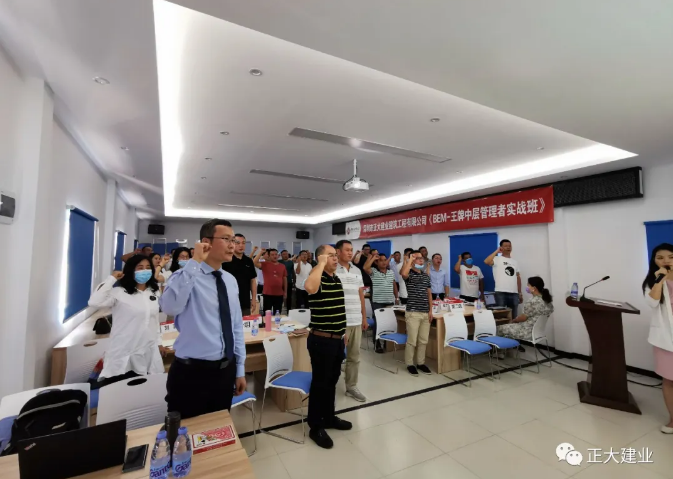 07月05日早上09:00王牌中層管理者實(shí)戰(zhàn)班開(kāi)學(xué)典禮儀式正式開(kāi)始,正大建業(yè)總經(jīng)理胡冷非就此次培訓(xùn)發(fā)表了開(kāi)場(chǎng)致辭,并組建學(xué)習(xí)班委,分組分隊(duì)、集體宣誓。