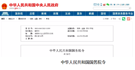 《保障中小企業(yè)款項支付條例》(中華人民共和國國務院令第728號)正式發(fā)布,自2020年9月1日起施行。